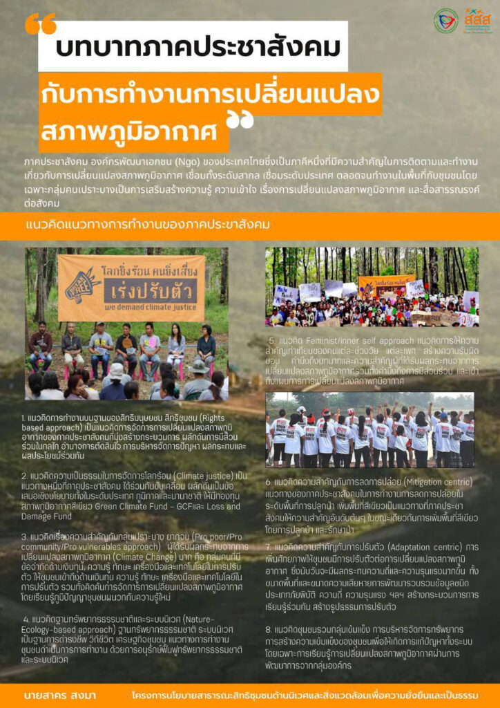 ข่าวสาร บทบาทภาคประชาสังคม กับการทำงานการเปลี่ยนแปลงสภาพภูมิอากาศ info env-ngos 17 May 2024 About the Author info env-ngos Administrator Visit Website View All Posts Post navigation Previous: สมัชชาองค์กรเอกชนสวล.ฯ (สคส.) ร่วมกับกรมโลกร้อน จัดอบรมความเป็นธรรมสภาพภูมิอากาศ เมื่อวันที่ 27 เมษายน 2567 โดยมี TCJA เป็นวิทยากรNext: วันป่าชุมชนแห่งชาติ Related Stories ข่าวสาร บทความ ประชาธิปไตยสิ่งแวดล้อม ประชาธิปไตยสิ่งแวดล้อม (21): พิมพ์เขียวประชาธิปไตยสิ่งแวดล้อมว่าด้วยการเปลี่ยนผ่านที่แท้จริง info env-ngos 9 March 2026 ข่าวสาร บทความ ประชาธิปไตยสิ่งแวดล้อม #ประชาธิปไตยสิ่งแวดล้อม (20): นโยบายการเปลี่ยนแปลงสภาพภูมิอากาศและพลังงานกับการจัดสรรความเสี่ยง info env-ngos 2 March 2026 ข่าวสาร บทความ ประชาธิปไตยสิ่งแวดล้อม ประชาธิปไตยสิ่งแวดล้อม (19): เลือกตั้งครั้งนี้เราไม่ได้เลือกพรรค แต่เลือกเจ้าของทรัพยากร info env-ngos 17 February 2026